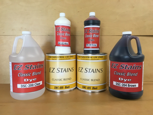 EZ Stains Blending System allows you to create your own custom colors using the 9 Classic Blend Stain Bases and 1 Clear base. (6 Dyes are also available). You'll produce batch-to-batch consistency in pints, quarts, and single or multiple gallons.